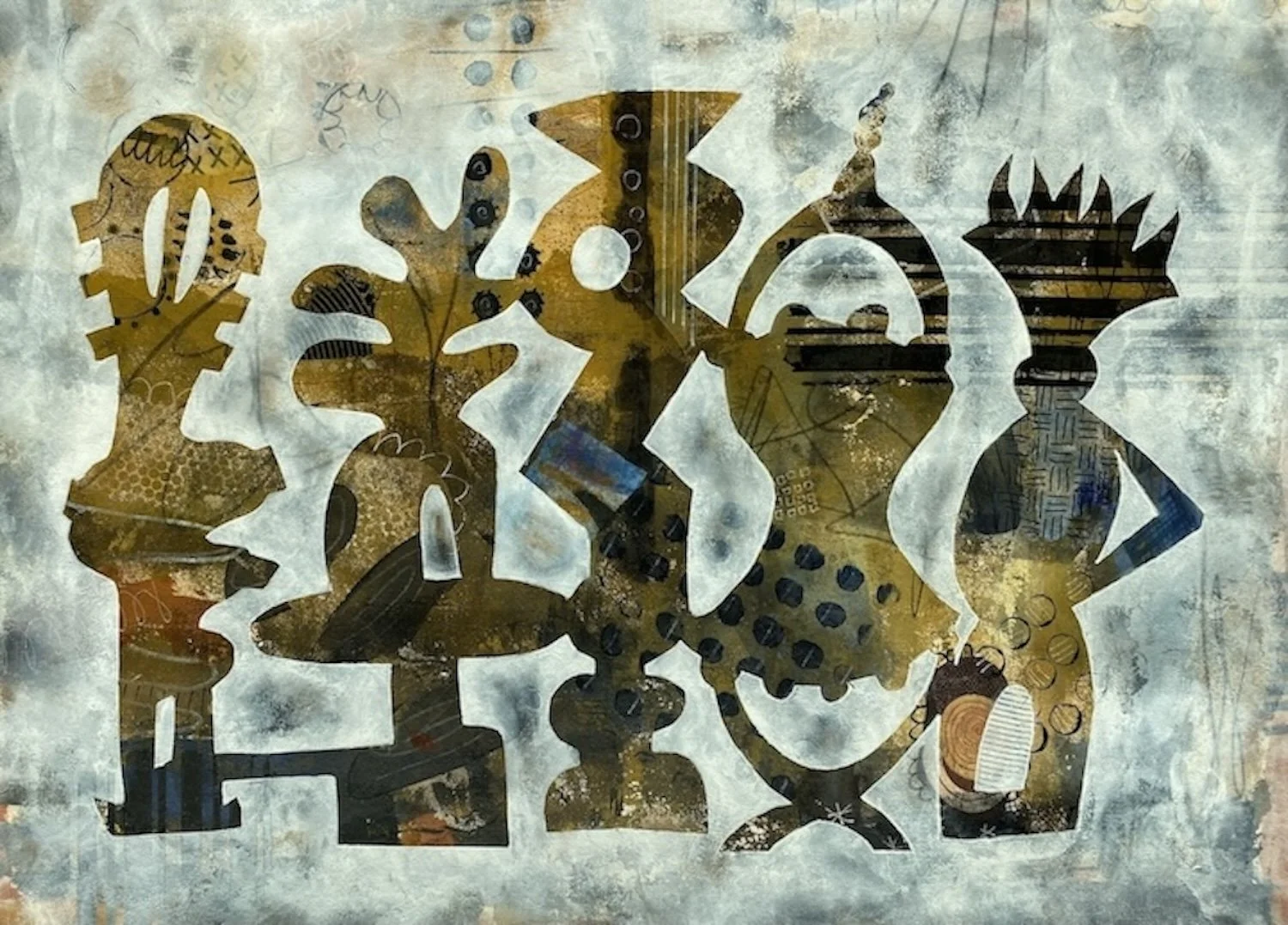 The work in We Are Family speaks to the messy and complicated relationships of family. I use the term family broadly not only to include the traditional family but also any close knit group of people connected by some sort of ties. Families can be wacky- sometimes nurturing sometimes neglectful. They can be places of belonging but also exclusion. In this series, I use organic, anthropomorphic forms to represent figures whose shapes intertwine and overlap, showing both friction and calmness as well as creating visual metaphors for lineage, inheritance, and the tension between individuality and collective identity.
